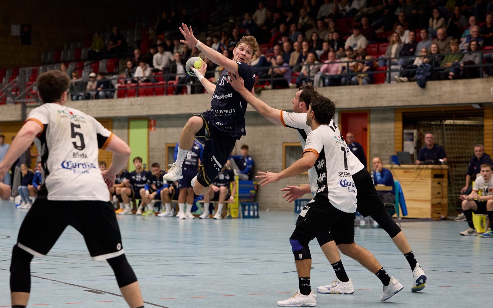 „Eigentlich wollten wir die Handlungsräume von Tom Abt eingrenzen“, gestand Gästetrainer Dominik Schwöbel: „Wie unglaublich schwer das aber ist, wurde uns heute klar. Nichtsdestotrotz sind wir mit einer hohen Intensität bei der vielleicht besten Mannschaft der Liga aufgetreten und hätten einen Punkt verdient gehabt.“ So hochgelobt der TSB wurde, genau so trat er auch auf. Eine Woche nach der 36:41-Pleite in Waiblingen war besonders von der bröckelnden Abwehr eine Reaktion gefordert. Weshalb Co-Trainer Simon Fröhlich mit dem Anpfiff die klare Devise aufs Feld rief: „Jeden Ballgewinn und jede Abwehraktion feiern wie ein eigenes Tor.“