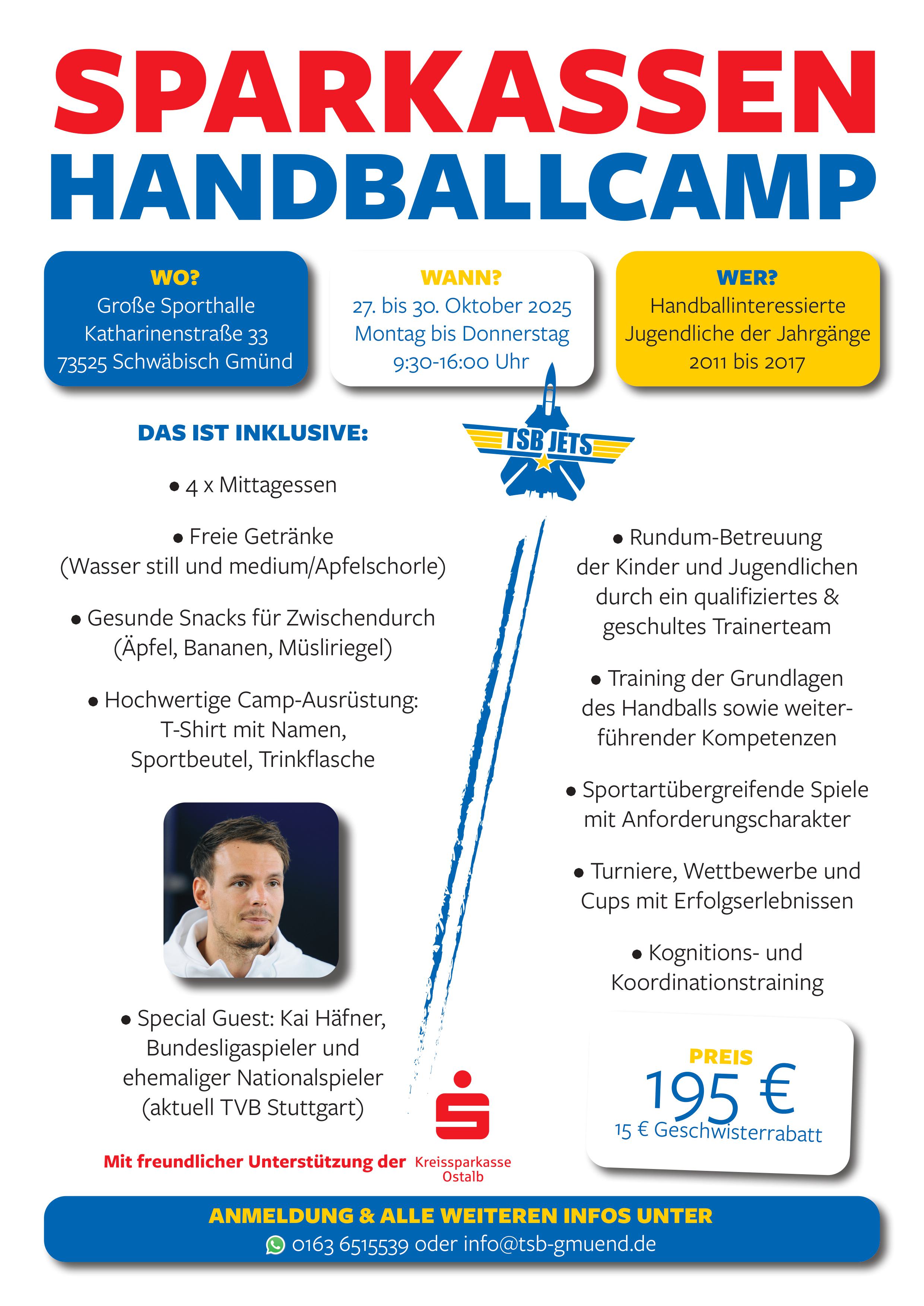 Du liebst Handball oder möchtest die Sportart einfach mal ausprobieren? Dann sichere dir jetzt deinen Platz beim Sparkassen Handballcamp 2025 in Schwäbisch Gmünd! Vom 27. bis 30. Oktober 2025 verwandelt sich die Große Sporthalle in der Katharinenstraße in ein echtes Handball-Paradies. Vier Tage lang dreht sich alles um Action, Teamgeist, Spaß und jede Menge Bewegung.