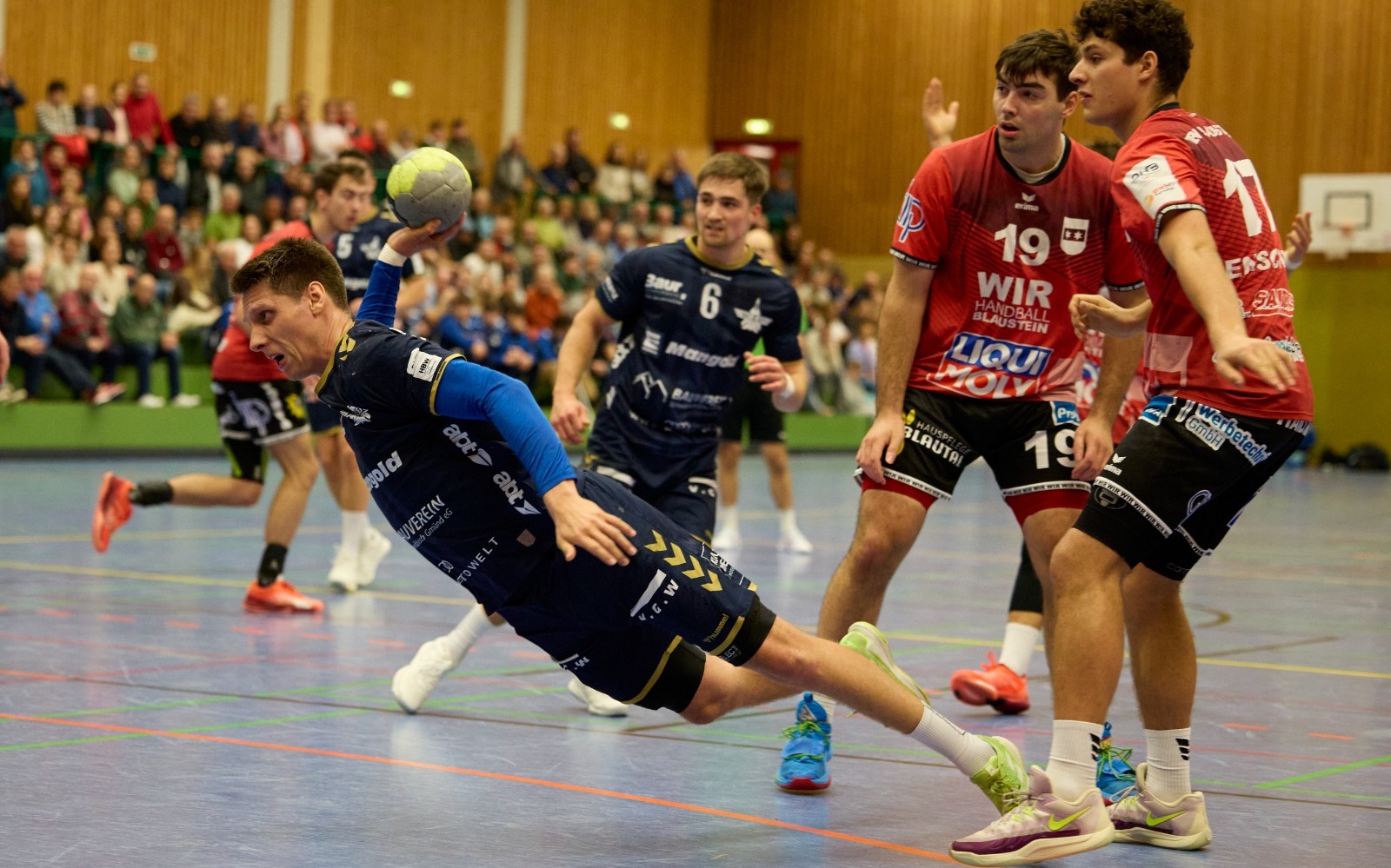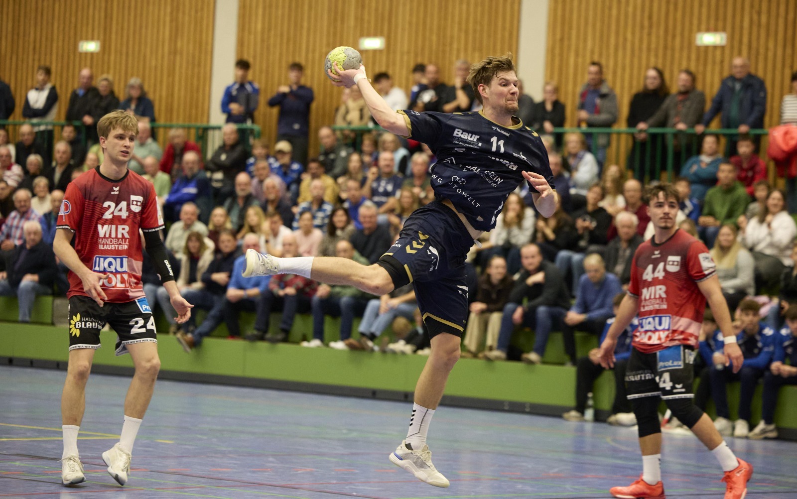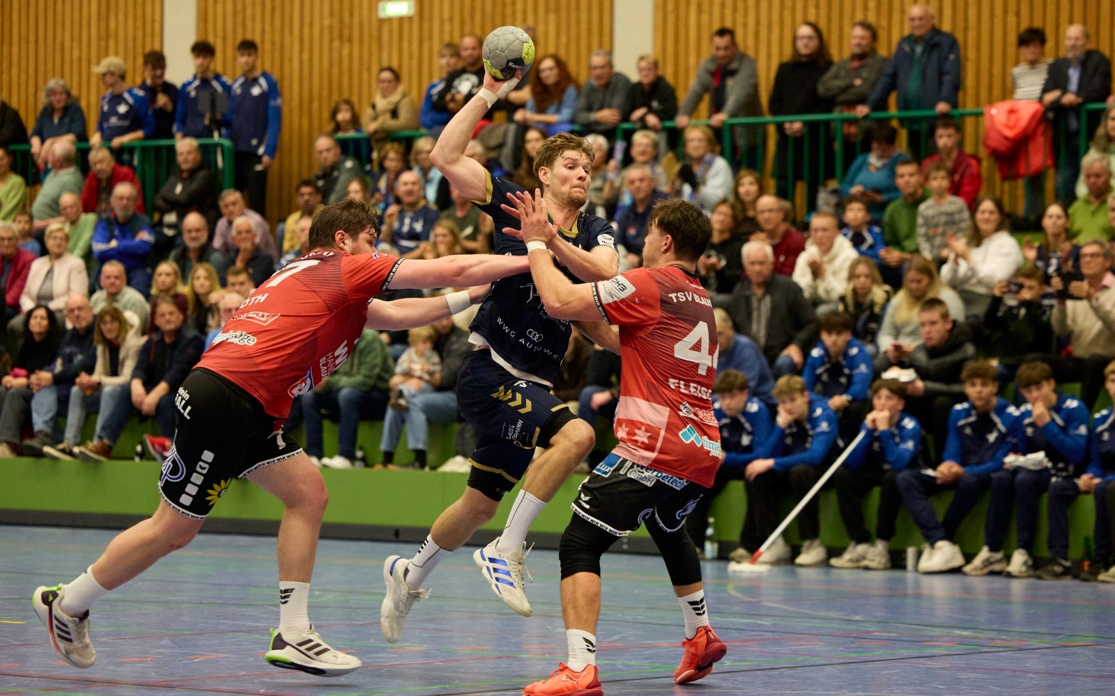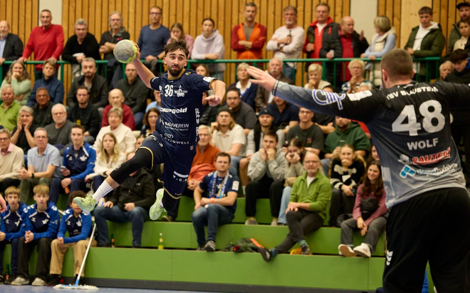 Eine Halbzeit lang tut sich der TSB Gmünd schwer, findet aber durch seine stabilisierte Abwehr zurück zu seinem Spiel und bezwingt das Regionalliga-Schlusslicht TSV Blaustein letztlich klar mit 34:23 (13:13). Zehn Tore von Linksaußen Niklas Burtsche und eine lautstarke Pausenansprache ebnen den Weg zum Pflichtsieg vor 500 Zuschauern in eigener Halle.