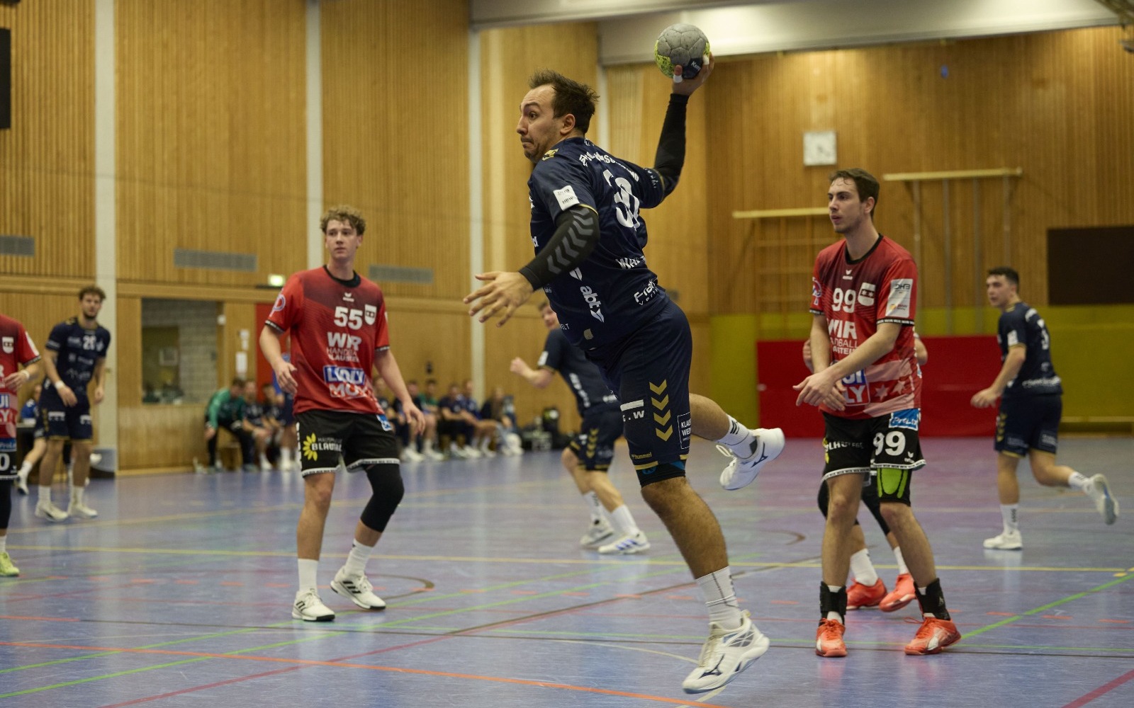 Wobei zunächst ein Großteil der ersten Hälfte nicht unbedingt einen solch souveränen Auftritt versprach. Durch ihren erneut genial aufgelegten Rückraum-Linkshänder Stefan Scholz legten die Hausherren zwar von Beginn an vor, doch selbst ein Drei Tore-Vorsprung brachte nicht die erhoffte Sicherheit. Dieses Mal war es nicht die Hintermannschaft, sondern die offensive Reihe, die sich gegen einen körperlich starken Gegner schwer tat. Torwart Daniel Mühleisen per Distanzwurf sowie der sichere Niklas Burtsche mit einem verwandelten Siebenmeter hatten auf 7:4 (12.) gestellt – alles deutete auf einen sicheren Sieg gegen den Tabellenletzten hin, der bis dato erst eines von zehn Spielen gewonnen hatte.Der TSB schwächelt – und handelt sich eine laute Pausenansprache ein