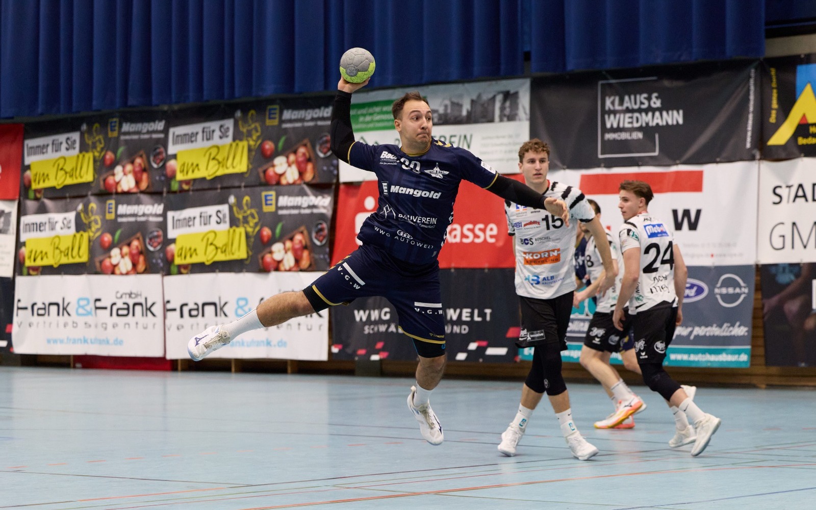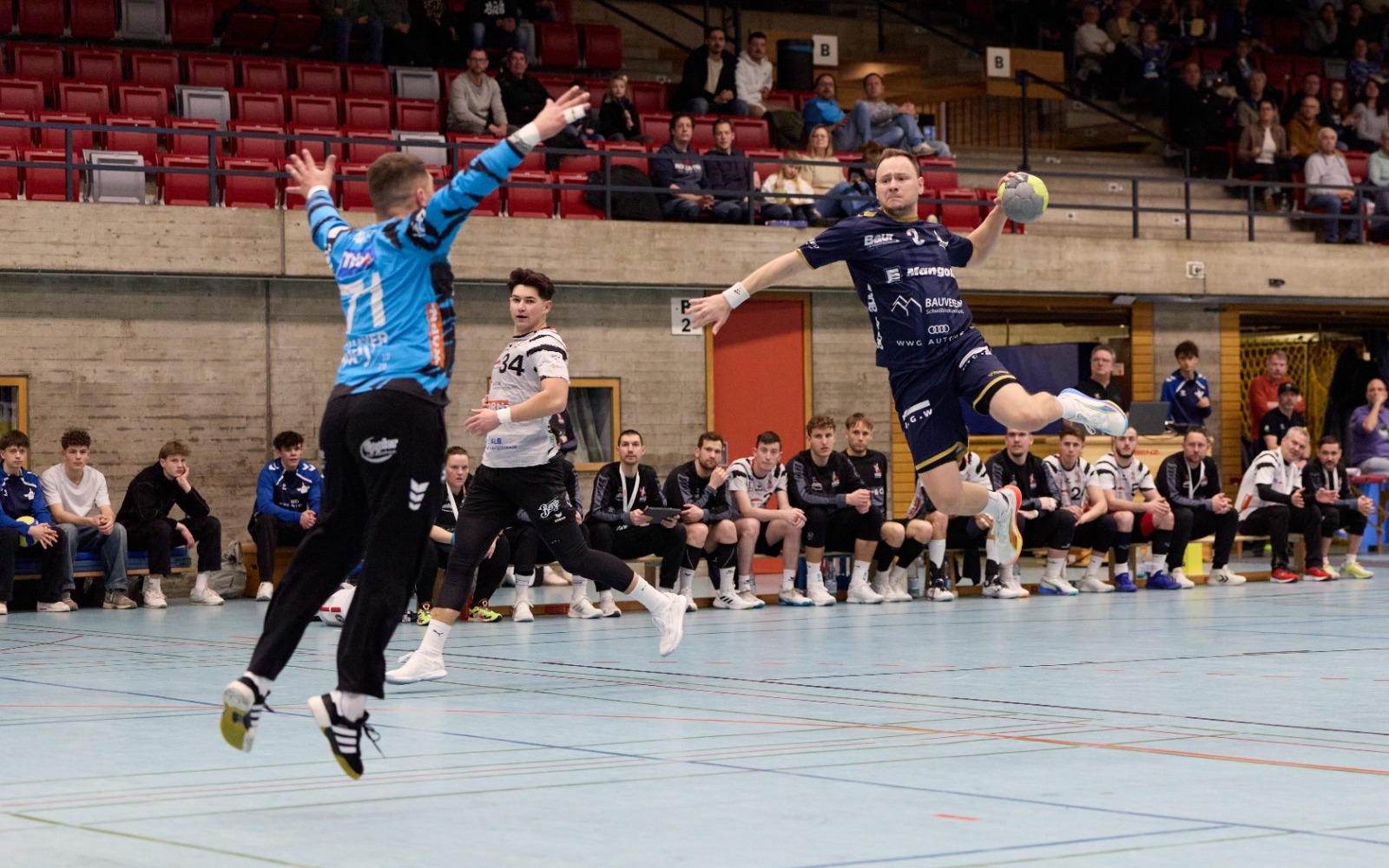 Die Offensive gewinnt Spiele, die Defensive gewinnt Meisterschaften – geht man nach diesem alten Lehrsatz, dann ist dem TSB Gmünd am Sonntagabend ein gewaltiger Schritt im Rennen um den Aufstieg in die 3. Liga gelungen. Zum allerbesten Zeitpunkt waren die Gmünder aus ihrem Winterschlaf erwacht und zeigten die perfekte Reaktion auf zuvor zwei Niederlagen in drei Partien. Zwar wollte es Aaron Fröhlich nicht zugeben, doch gerade der impulsive TSB-Trainer sah nach 60 Minuten Hochgeschwindigkeits-Handball durchaus erholungsbedürftig aus. "Viel investiert – gut abgeliefert", analysierte Fröhlich im Sitzen. Besonders hob er hervor, dass die eigene Abwehrleistung deutlich besser war als es die 34 Gegentore in einem extrem temporeichen Spiel aussehen lassen: "Das war genau das, was wir uns erhofft und worauf wir hintrainert haben. Die Situation, dass wir gegen den Ersten alles geben mussten und etwas Druck verspürt haben, hat uns vielleicht auch ganz gut getan."