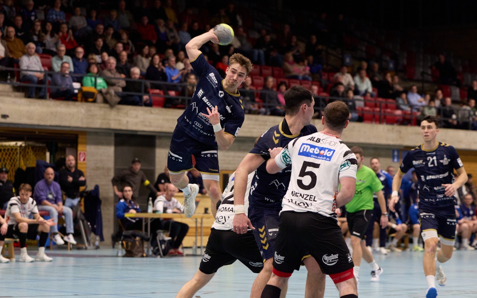 Die Kraftreserven und ein Wechsel zwischen den Torpfosten gaben den Ausschlag. Frisch von der Bank gekommen, kaufte Tobias Klemm dem besten HSG-Werfer Lasse Fuchs gleich zwei Versuche von Linksaußen auf. Leichs vergoldete dies und traf dann über die volle Felddistanz zum 29:26 (48.). Ein Polster, das Abt aufrecht erhielt, als er mit aller Macht in die Lücken der Albstädter Abwehr stieß und seine insgesamt neun Treffer erzielte. Dann war es wieder Klemm, der zunächst gegen Rechtsaußen Gregor Thomann den möglichen Anschlusstreffer verhinderte und in seiner nächsten Szene Spielmacher Julian Thomann verzweifeln ließ. Es waren die wichtigsten Paraden zur besten Zeit – garniert davon, dass es der nächste Distanzwurf durch Burtsche vom Pfosten hinein ins Netz spang. Es gab kein Halten mehr und Routinier Bächle setzte mit einem Dreher zum 38:34 den umjubelten Schlusspunkt.