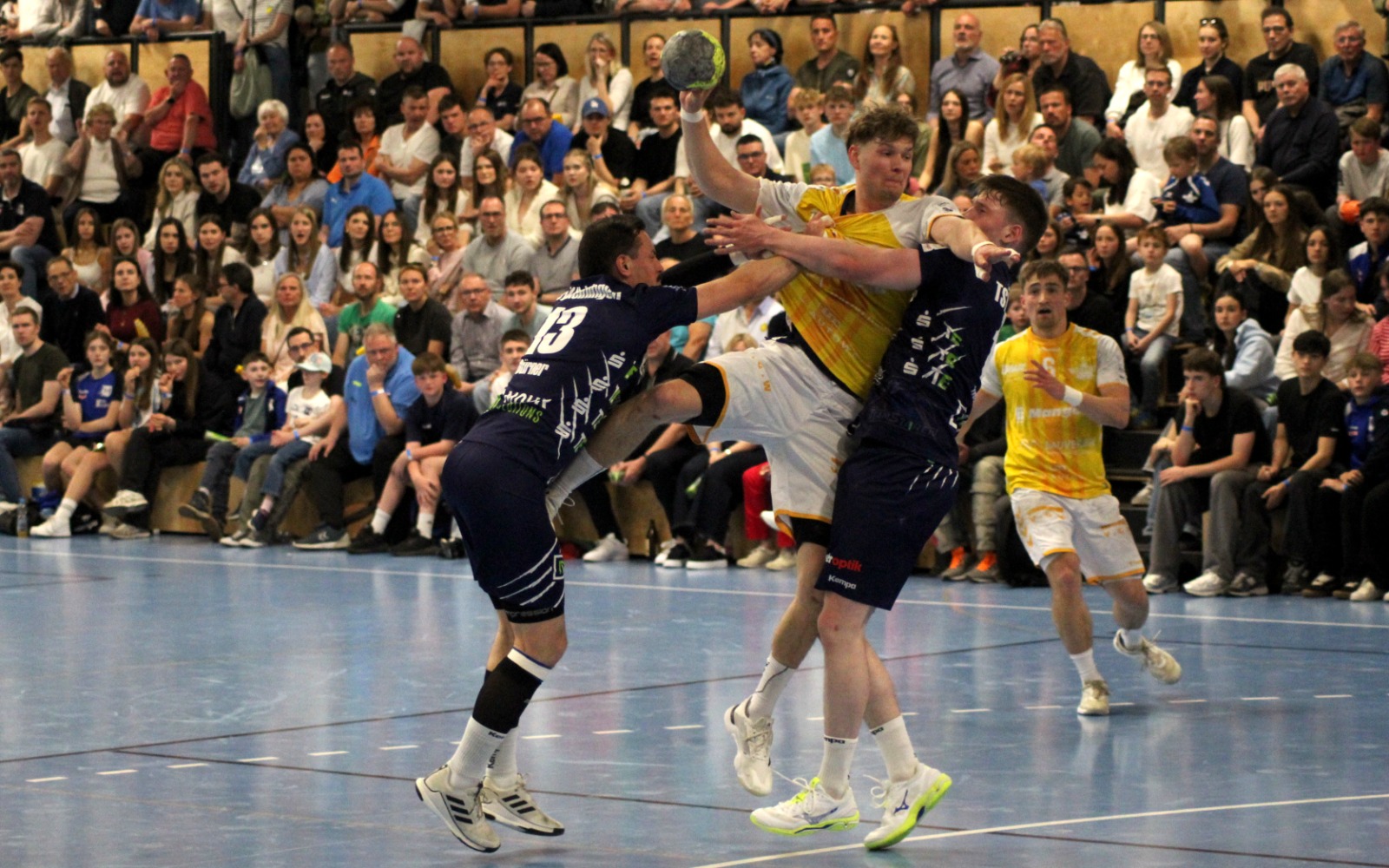 Die Jets ließen es keinesfalls locker angehen, sie hatten richtig Lust darauf, vor der tollen Kulisse befreit aufzuspielen. Torjäger Niklas Burtsche vergab seinen ersten Wurf, machte es kurz darauf aber und traf zur 6:3-Führung (9.). Es ging hart und hektisch zur Sache, obwohl es nur noch für die Hausherren um etwas ging. Die Überzahlsituationen nutzte der TSB zunächst gnadenlos aus. Nach einem kollektiven Ballgewinn stürmte Stefan Scholz davon und verwandelte lässig ins leere Tor, Yannik Leichs erhöhte sogar auf 10:6 (17.). „Solange wir in unserer normalen Formation gespielt haben“, meinte Fröhlich, „hat man gesehen, dass wir aktuell einfach besser sein. Auch wenn vielleicht der allerletzte Biss gefehlt hat.“