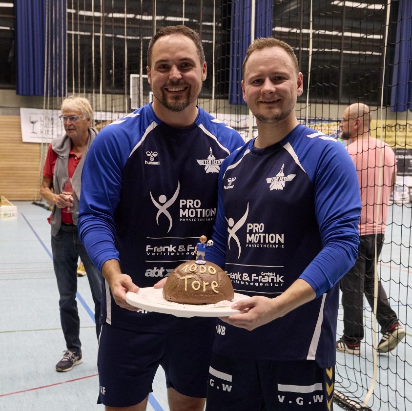 Selbstsicher machte der TSB weiter und nachdem Scholz gefoult wurde, war es endlich so weit. Schon als Bächle an die Siebenmeterlinie trat, applaudierten die 600 Zuschauer. „Ein Gänsehaut-Moment“, schwärmte der Routinier, der ganz cool zum 13:7 (31.) verwandelte. Ein Tor für die Geschichtsbücher, gleichzeitig auch erst der 39. Strafwurf in Bächles langer Karriere. „Ich habe den Ball nicht gefordert“, stellte er hinterher klar: „Aber Tom Abt ist zu mir gekommen und hat ihn mir überlassen.“