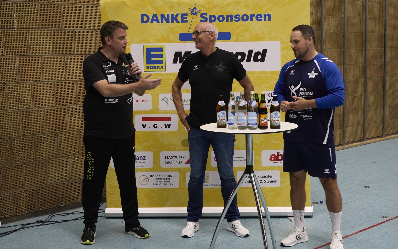 War es Stolz oder Erleichterung? Beides stand Wolfgang Bächle nach Spielende ins Gesicht geschrieben. Der Kapitän des TSB Gmünd war der gefeierte Mann, obwohl er „nur“ einen Treffer erzielt hatte – dafür aber sein 1000. Tor in der vierthöchsten Spielklasse. „Ein toller Meilenstein und ein gelungener Abend“, freute sich der 31-Jährige, der nun gleichauf mit seinem Trainer Aaron Fröhlich der Gmünder Rekordtorschütze ist. Statt einem Spektakel allerdings hatte es zuvor eine Abwehrschlacht gegeben, an deren Ende die Gastgeber erst einmal tief durchatmen mussten.